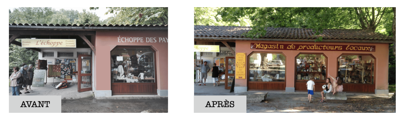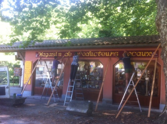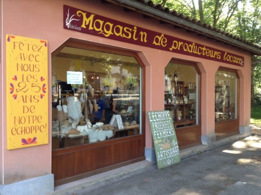 L’échoppe à Castelnau Durban, Ariège. Une jolie boutique avec des produits des artisans et producteurs du coin ! Que du BON que du BEAU !!! Il FAUT vous arrêter vous reposer sous la belle allée de platane, le long de la rivière, et en profiter pour entrer dans l’échoppe ! Association Vallée Vivante.