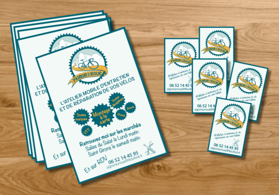 Création d’un logo, réalisation de carte de visite et flyer et flocage véhicule.